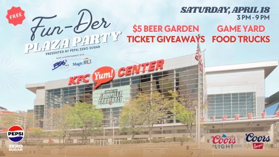 “We’re thrilled to bring Louisville an entirely new way to kick off Derby season,” said Eric Granger, General Manager of the KFC Yum! Center. “The FUN-DER Plaza Party is a celebration of community, good vibes, and the spirit of fun that our city is known for. I’m incredibly grateful to our partners, Pepsi Zero Sugar & Molson Coors, for helping make this event possible, and we can’t wait to share it with everyone.”