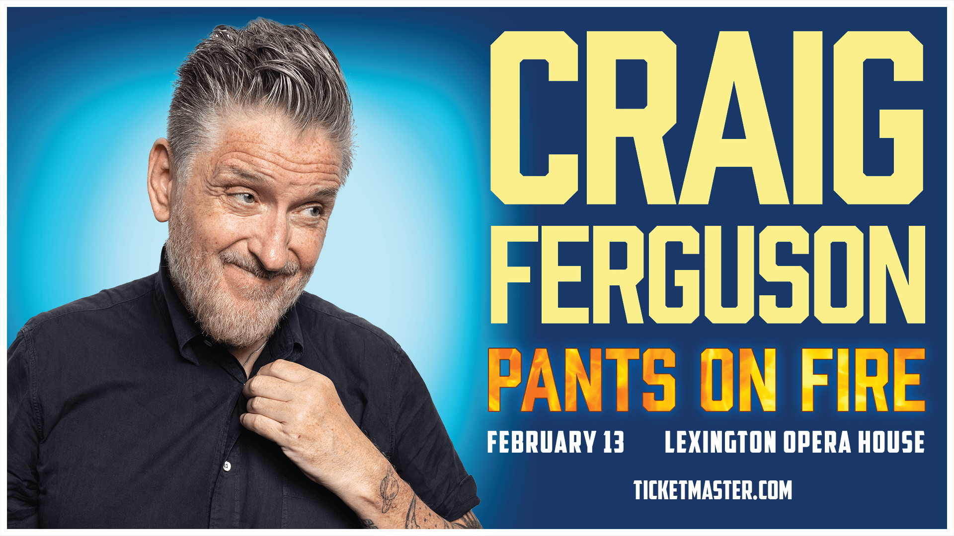LEXINGTON, KY (November 3, 2025) –– Actor, writer, producer, director, and comedian Craig Ferguson brings his Pants on Fire tour to the Lexington Opera House on Friday, February 13, 2026. Craig Ferguson has a diverse career that encompasses film, television, and the stage. He is a New York Times bestselling author and has recorded numerous stand-up specials for Netflix, Epix, Comedy Central, and Amazon